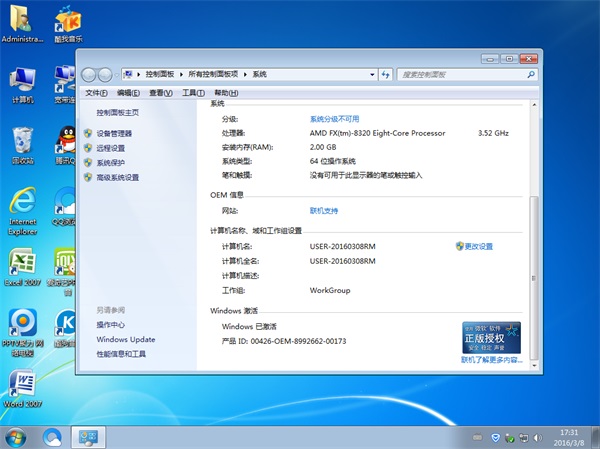 * 更新了系统补丁和Office2007 3in1所有补丁到2016-03(可通过微软漏洞扫描和卫士漏洞扫描)