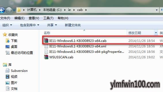 以:iE11-windows6.1-KB3008923-x64.msu 补丁为例