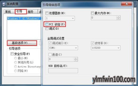 2、点击”引导“-->高级选项-->将pCi锁定去掉钩-->之后重启电脑即可解决。