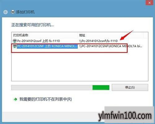 3、这时会出现网络上共享的打印机。这里以“KoniCA MinoLTA”为例,点击这个打印机,下一步;